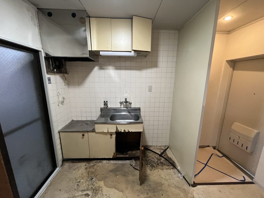 キッチンは潰れており、浴室ドアは使い方が悪かったこともあり閉まらなくなってしまい、床・壁ともに汚れと劣化にてかなり傷んでおりました。