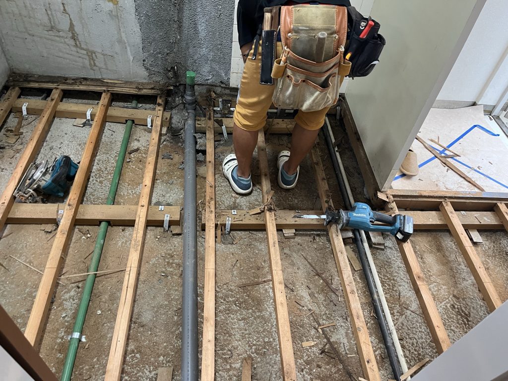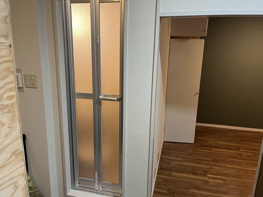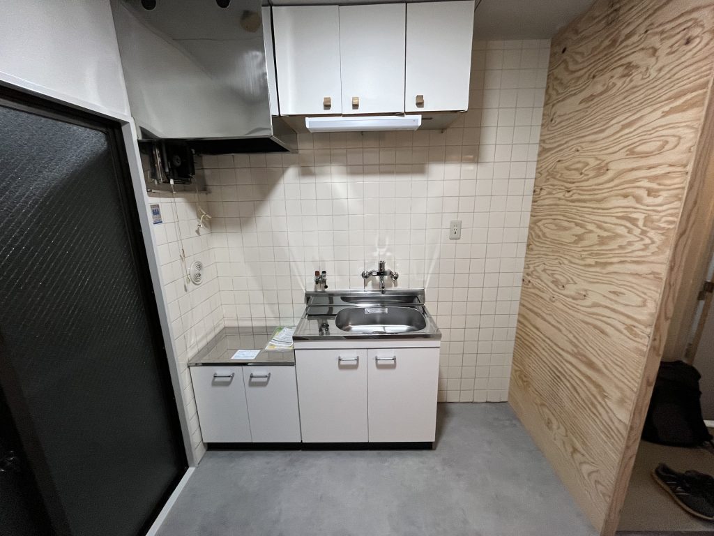 工事内容として、クロス貼替・CF貼替・キッチン交換・浴室ドア交換・キッチン前床下地のやり替え・玄関周りの壁に針葉樹合板貼り付け工事・ハウスクリーニングになります。