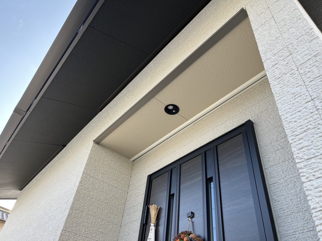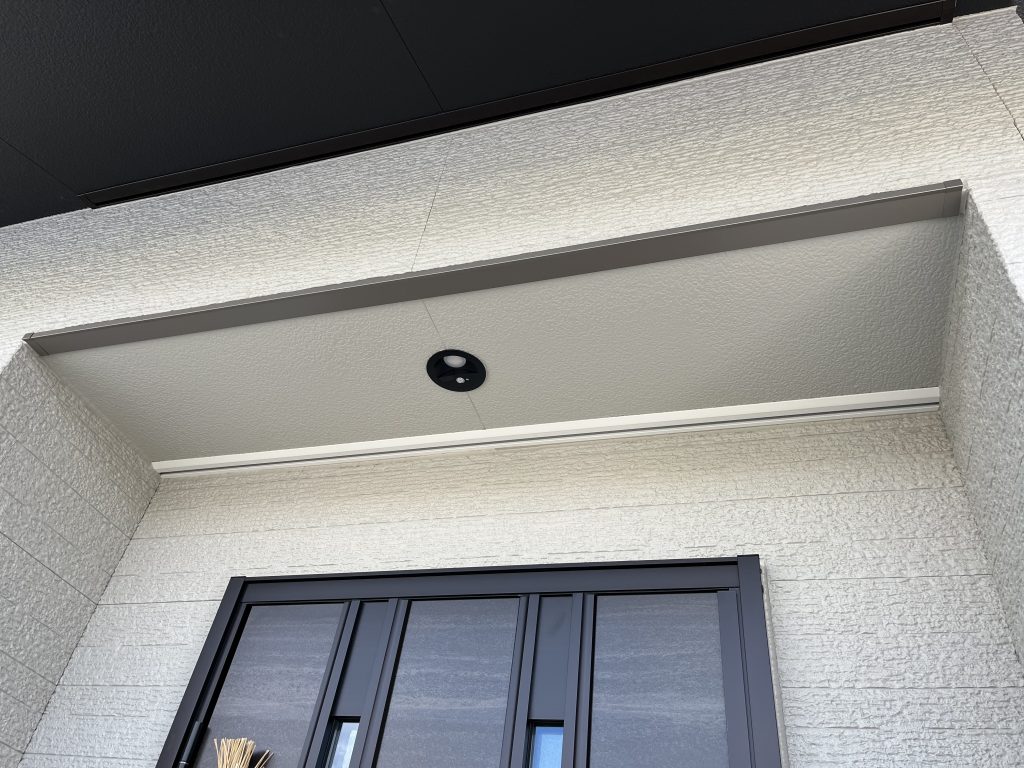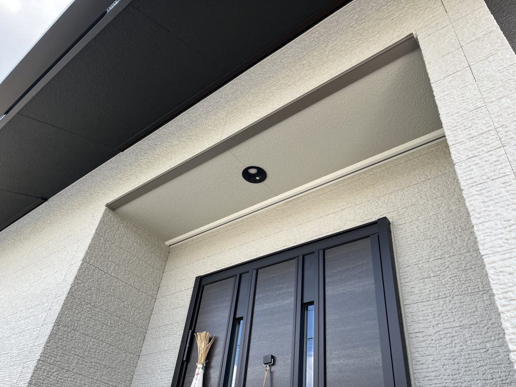 お施主様のご自宅は新築にもかかわらず、玄関ポーチ天井の色が外壁の色と異なることが気になっておられました。特に外観の統一感が大切な玄関周りだからこそ、外壁と天井の色味を合わせることで、より一層洗練された印象を目指す施工となりました。