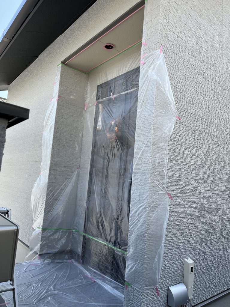 本日は、京都市右京区で行った外壁塗装工事をご紹介します。今回の施工は、新築住宅の玄関ポーチ天井の塗装に関するもので、「外壁と天井の色を統一したい」というお施主様のご要望にお応えしました。